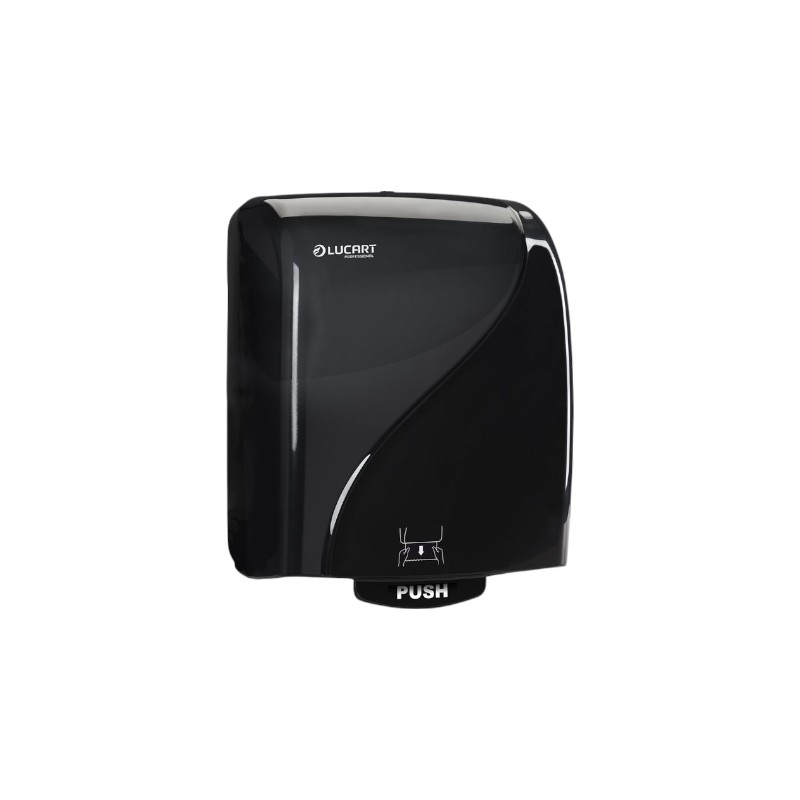 Συσκευή για χειροπετσέτα σε ρολό από την Lucart, για χώρους με μεγάλη επισκεψιμότητα από ανθεκτικό πλαστικό.